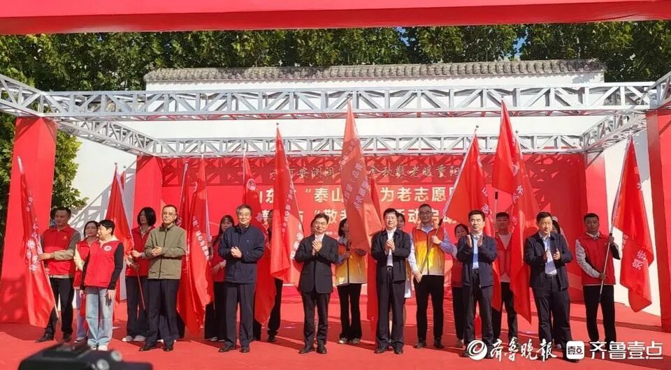 启动仪式上,为新加入山东省“泰山松”暖心为老志愿服务总队的14支为老服务志愿队进行授旗。据介绍,“泰山松”为老志愿服务总队于2022年6月成立,聚焦全省独居、孤寡、高龄、重病、残疾、经济特困等老年人的多元化基本养老服务需求,横向联合院校、企业和社会组织,纵向省市县“三级联动”,带动乡村户开展六级为老志愿服务。